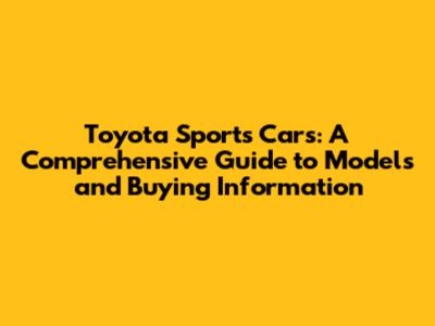 Toyota Sports Cars: Models, Specs, And Where To Buy
