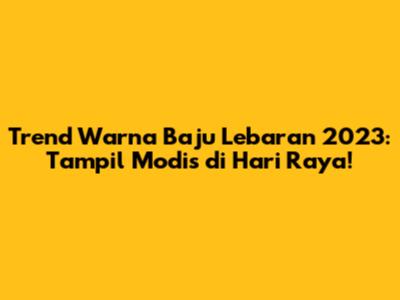 Lebaran, atau Idul Fitri, adalah momen yang sangat dinantikan oleh umat Muslim di seluruh dunia. Selain sebagai hari kemenangan setelah sebulan penuh berpuasa, Lebaran juga menjadi ajang untuk bersilaturahmi dan tampil ΠΌΠ°ΠΊΡΠΈΠΌΠ°Π»ΡΠ½ΠΎ dengan busana terbaik. Nah, buat kalian yang sedang mencari inspirasi warna baju Lebaran 2023, artikel ini akan membahas tuntas tren warna yang akan booming di tahun ini. Yuk, simak terus!