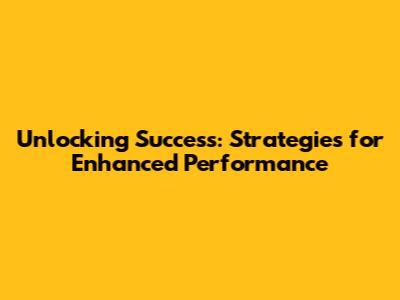 Unlocking Success: Strategies For Enhanced Performance