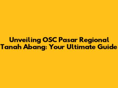 Unveiling OSC Pasar Regional Tanah Abang: Your Ultimate Guide