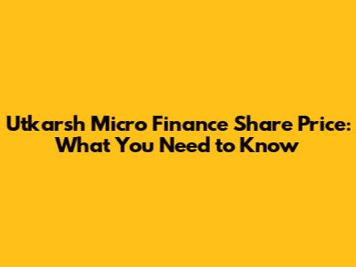 Utkarsh Micro Finance Share Price: What You Need To Know
